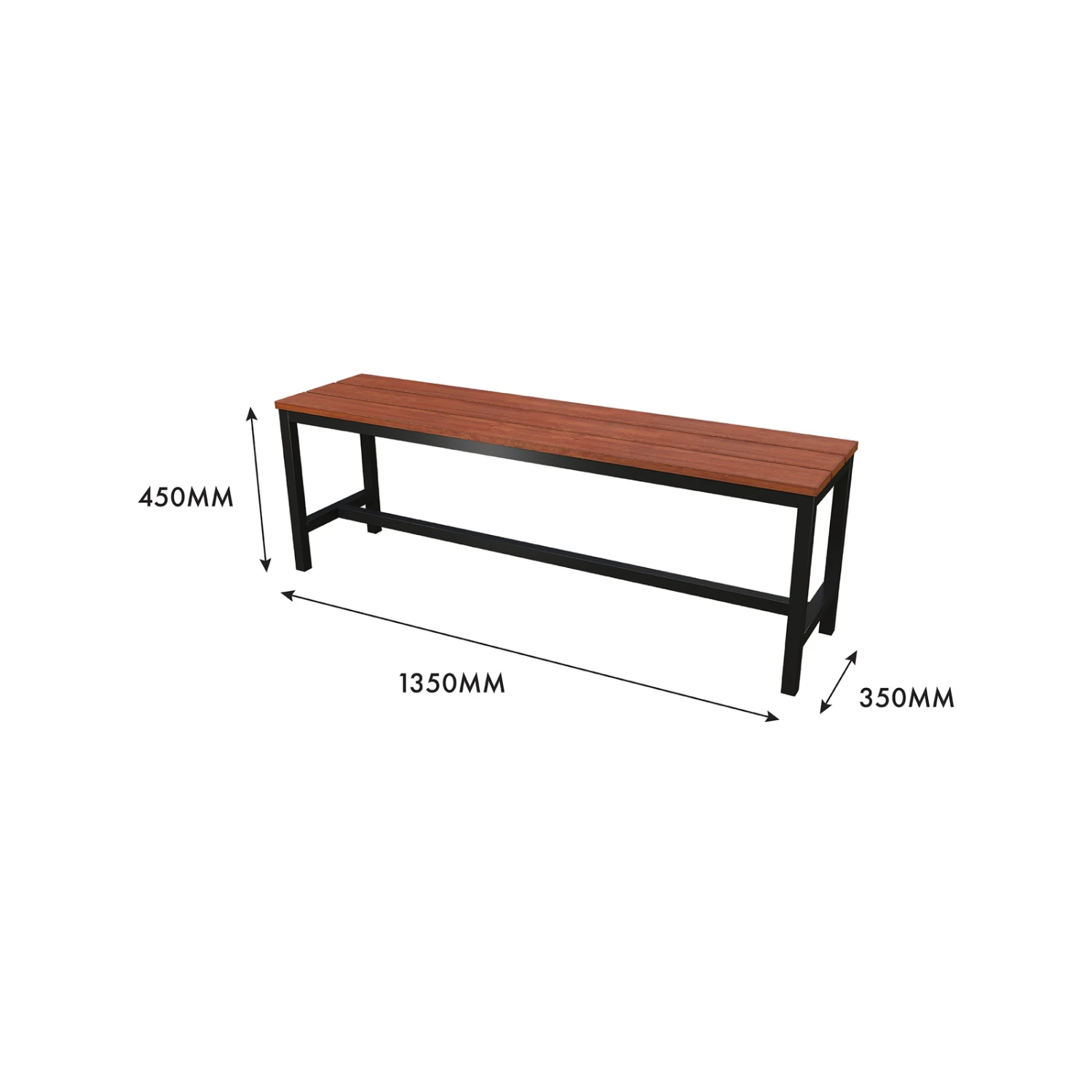 The Marquee Trentham furniture range combines Eucalyptus Timber with Powder-Coated Aluminium Frames to create modern, on-trend furniture for your outdoor space.This 1350mm wide Outdoor Bench features a 450mm high frame and is designed to pair with the 1500mm Outdoor Dining Table in the Trentham range. The bench top is made with 100% FSC Eucalyptus timber giving it a darkening red hue that will add to the ambiance of your outdoor dining and entertaining area. All pieces in the Trentham range are made with black powder-coated aluminium frames providing corrosion resistance in any outdoor environment. This Bench comes with all fixings, tools and instructions for easy assembly.