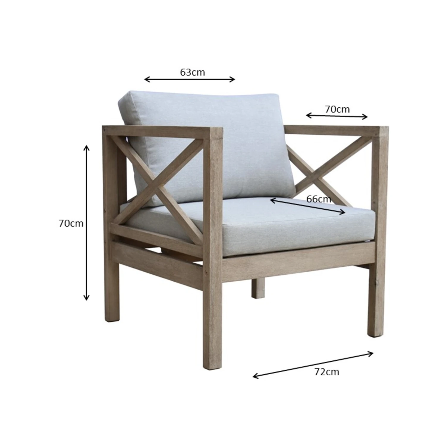 The Harbour 1 seater is crafted from sustainably harvested Acacia timber that meets the standards of the Forest Stewardship Council (FSC®). The timber is brushed with a white washed finish. Also part of the Harbour collection is a 2 seater sofa and coffee table, which all create a beautiful, rustic style outdoor setting with cross back frames.