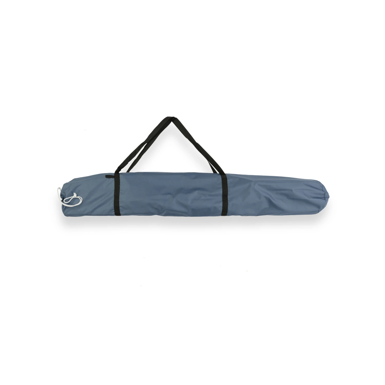 The Marquee 1.74m x 1.74m Portable Gazebo lets you enjoy the view and the breeze whilst relaxing in the shade. Fabric rating UVE95+% most effective you and your family are protected from harmful UV rays. This clever cabana converts from a gazebo to a large umbrella with ease – just remove the canopy legs. With integrated sand pockets, a sand anchor and pegs included, your sun shelter is stable as the afternoon breeze rolls in. Keep your belongings up out of the sand (and know where your keys are at the end of the day!) with not one, but four elevated storage pockets. The Maquee Portable Gazebo is made with sturdy powder coated 32mm steel pole and ribs, is 1.92m high and has a 1.74m wide square canopy. It packs away into its own carrybag with shoulder straps for easy transport and storage. The stylish Navy Portable Gazebo is made from fade resistant fabric keeps this cabana looking good for the many outdoor adventures to come.The Portable Gazeboe is so versatile – perfect at the beach, on picnics, camping, at sporting events, parties, market stalls, kids play areas and out on the patio in the backyard.